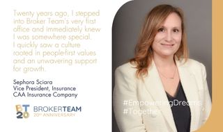 Just like that: BrokerTeam is 20 years old! We’re taking this year to highlight what we value the most: people – our team, our clients, and our partners. Take a moment to read some incredible stories below about how we are Empowering Dreams Together.